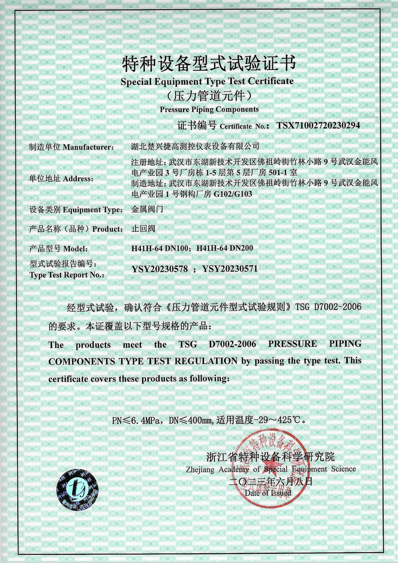 止回阀型式试验报告