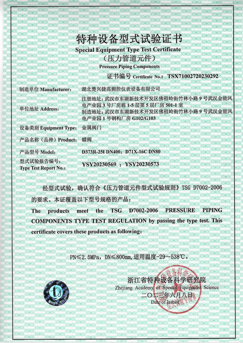 蝶阀型式试验报告