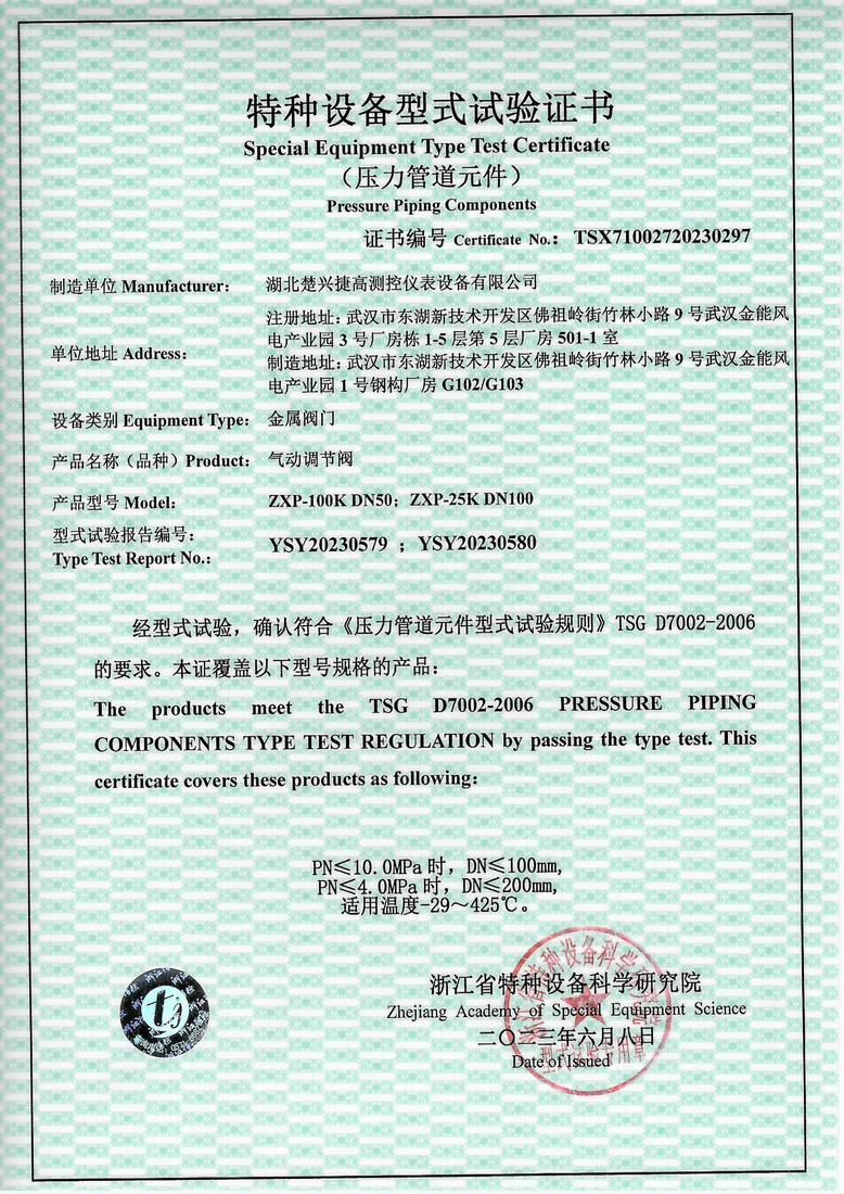 调节阀型式试验报告